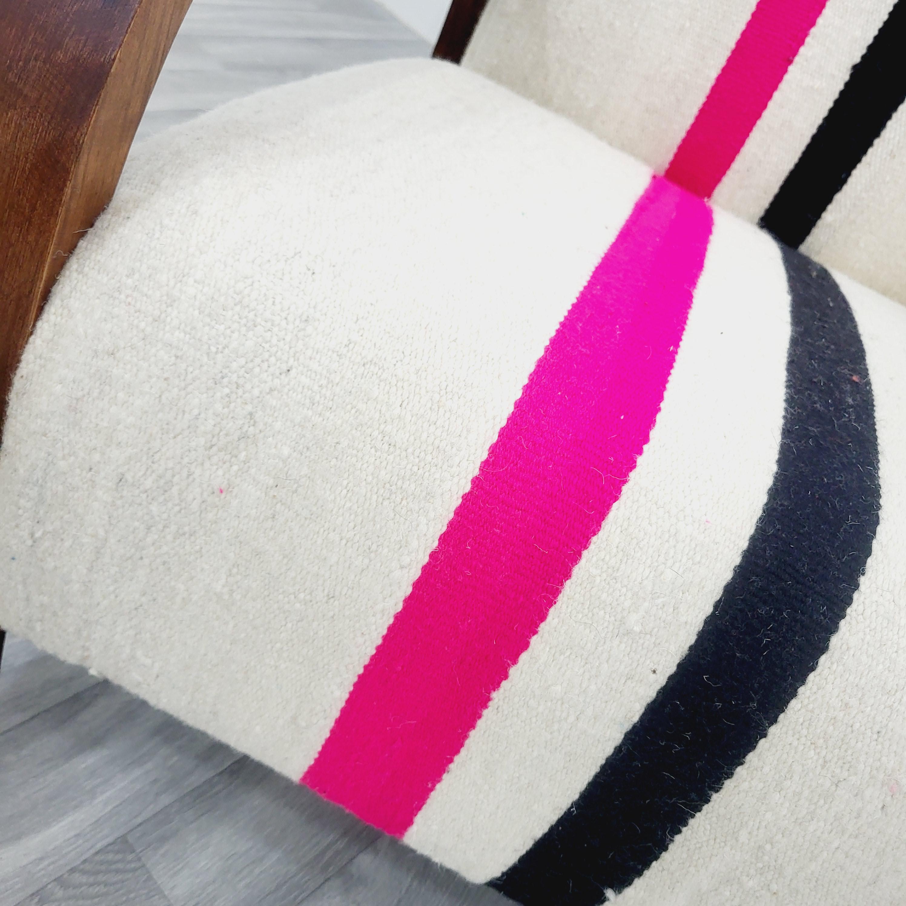 The sturdy walnut frame brings warmth and durability, while the repurposed wool rug adds a unique pattern and cozy feel to every chair—no two are exactly alike. Perfect as a statement piece for your living room, reading nook, or bedroom.