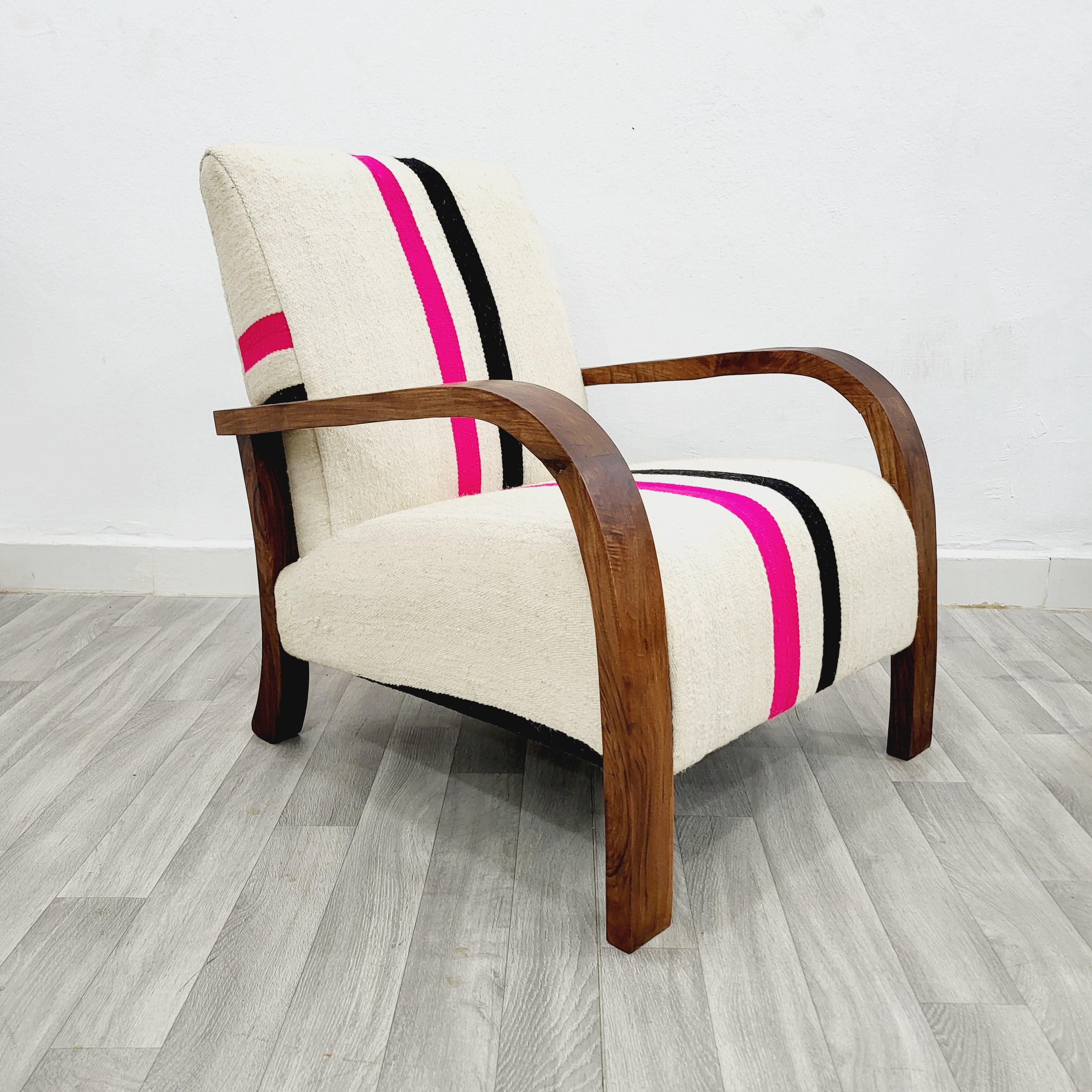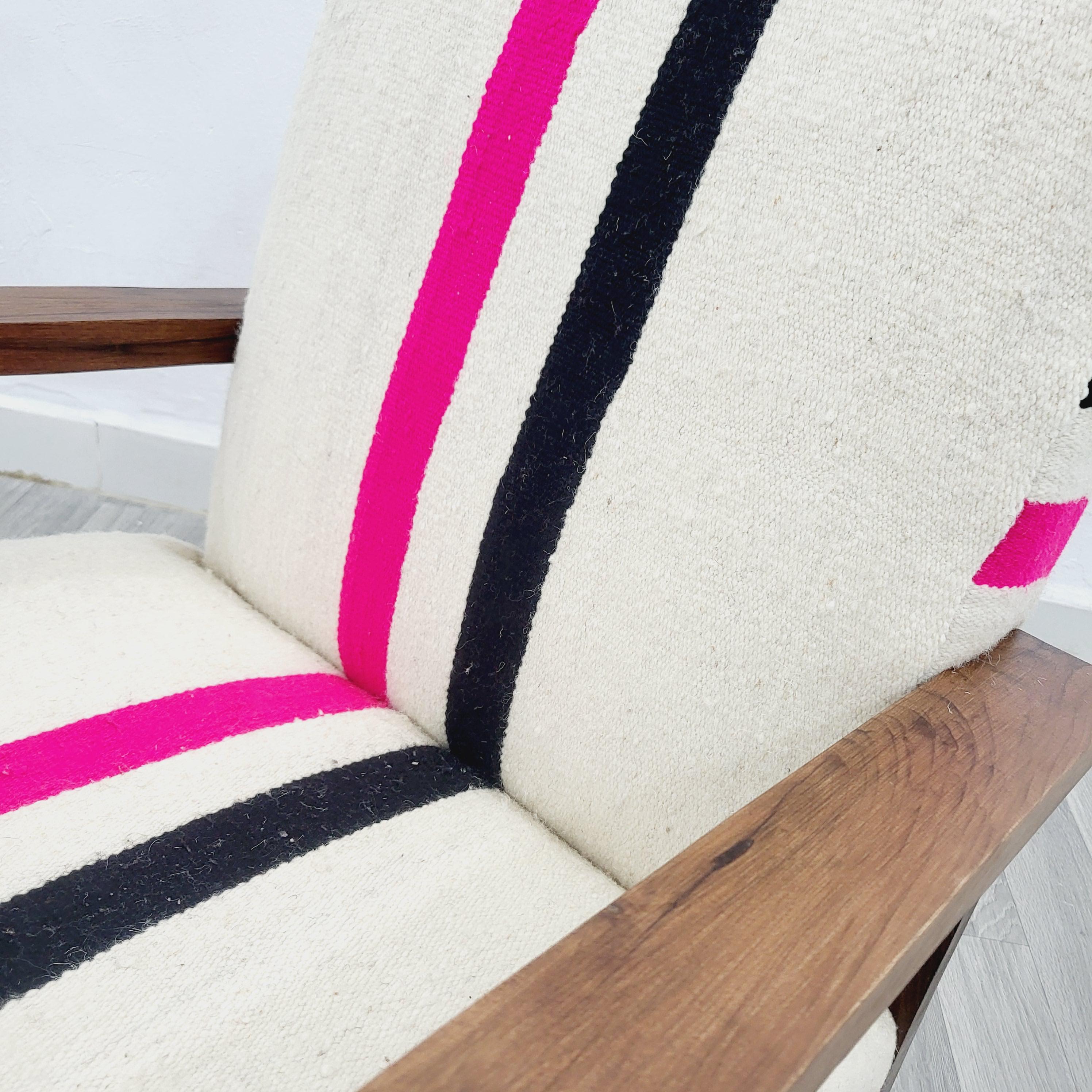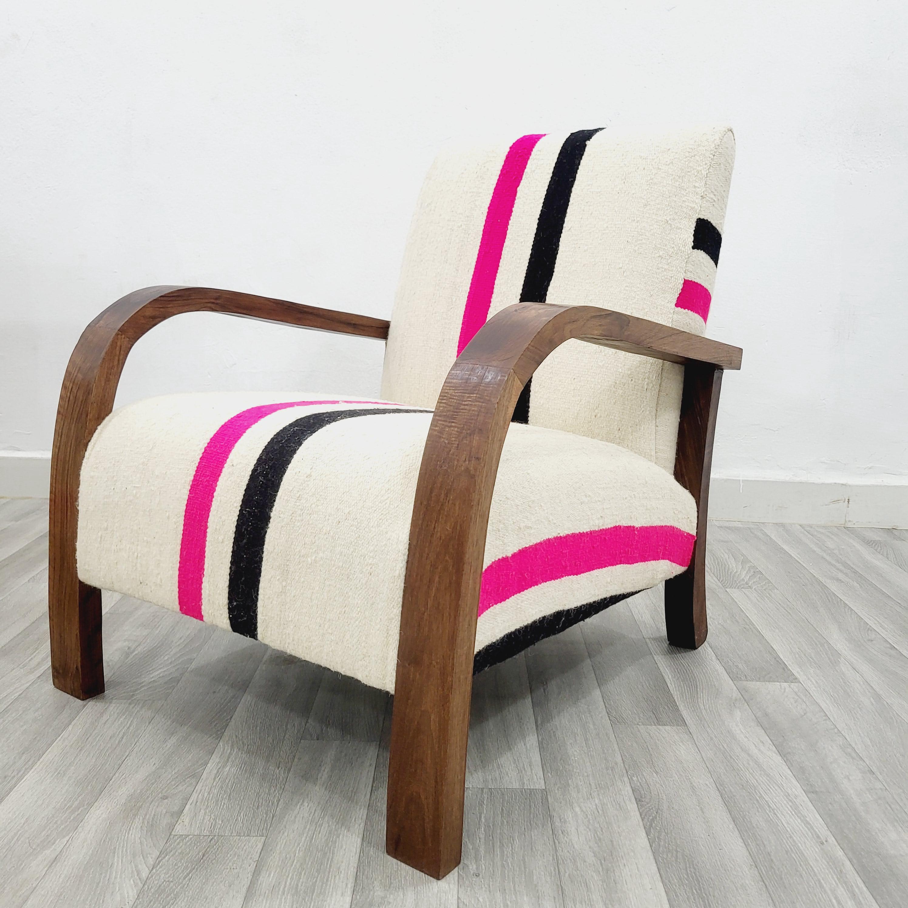 Handcrafted Walnut & Wool Rug Armchair – Unique, Cozy, Timeless