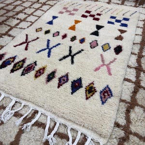 With its plush texture and minimalist geometric design, this rug blends effortlessly into both modern and traditional interiors. Each piece is unique, showcasing the craftsmanship and heritage passed down through generations. • Size: 3x5 feet • Material: 100% natural wool • Berber motifs • Soft, thick pile for cozy comfort • Handmade and one-of-a-kind • Ethically sourced and sustainably made • Ships immediately from Morocco